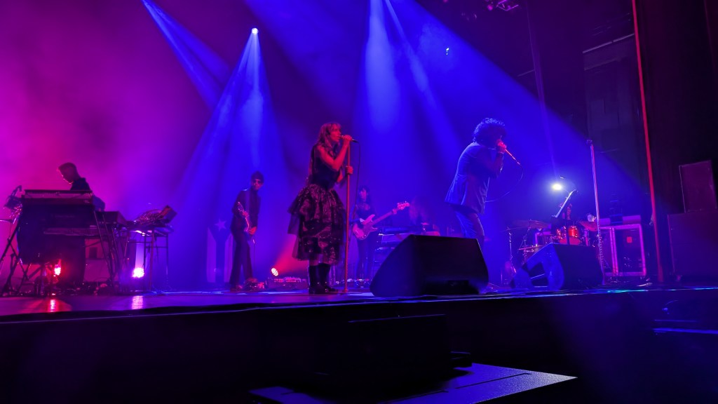 Providing supporting vocals was performance artist Teri Gender Bender, who I hadn’t had much knowledge of prior to the show. To my understanding, she is a frequent collaborator with The Mars Volta, especially on tour. The harmonies that Teri and Cedric made together were incredible – their voices play off of each other’s really nicely, and I love the layers of emotion that they are both able to convey through song. While Teri didn’t sing, they danced sort-of off to the side. I was a bit confused by the inclusion of their dancing – to me, it didn’t seem to fit with the rest of the performance. I couldn’t pinpoint if Teri was dancing to the lyrics to push narrative, to the melody or rhythm to accentuate musicality, or to the vocal cadence to add visual texture, but it just ended up being a distraction rather than an interesting addition.